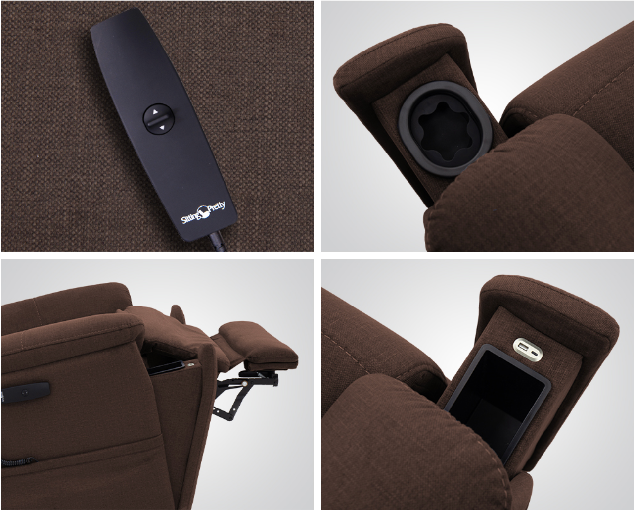 The Sitting Pretty lineup of power lift recliners from Pride® Mobility exude style and sophistication. These three-position recliners offer superior craftsmanship and functionality. Enjoy convenience with a magnetic hand control holder on either side of the chair*. Stay connected with USB charging ports. And eliminate pressure points with a chaise pad design that fully supports the legs. *Available on Small, Medium, and Large sizes.